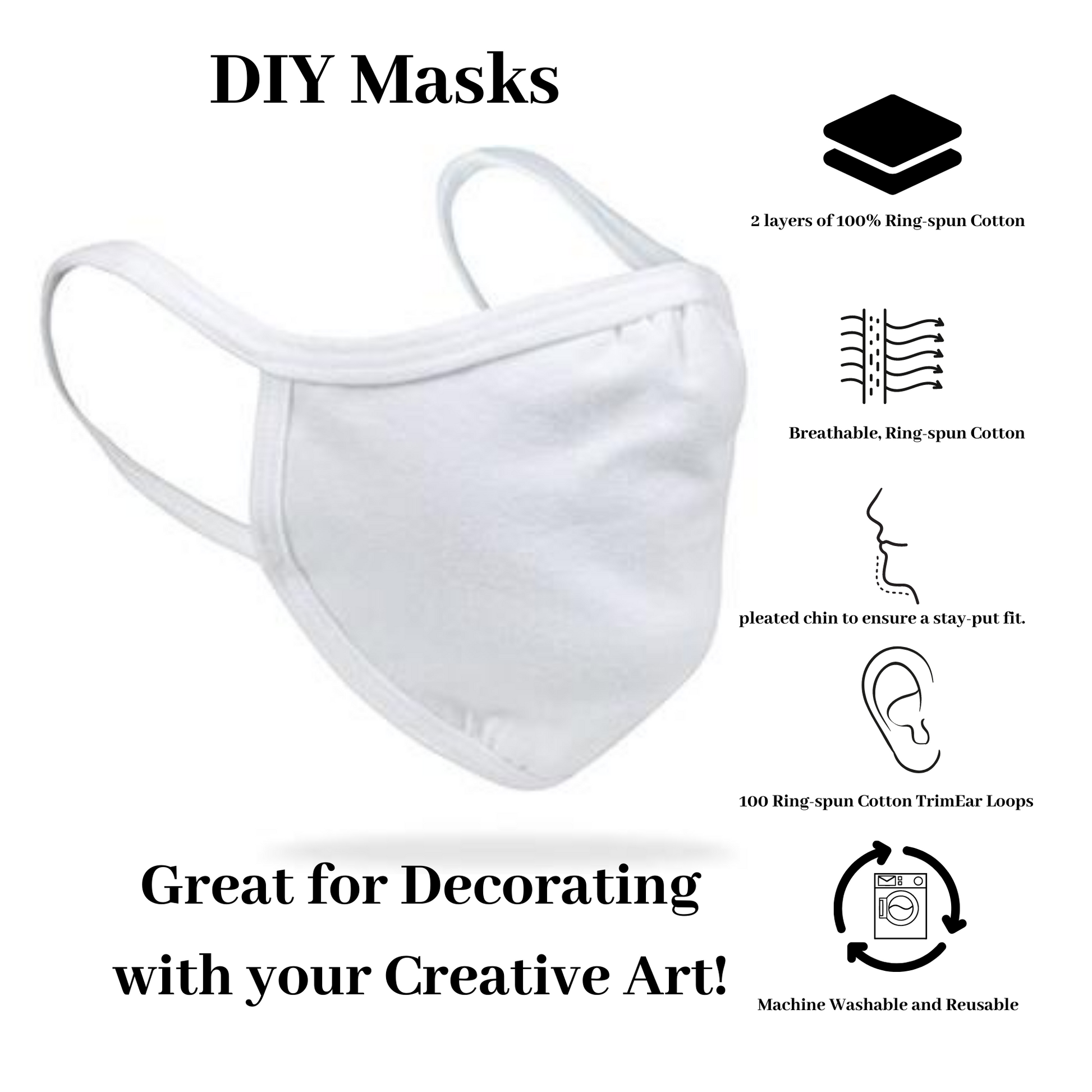 Our Cotton face masks are great for HTV designs! Customizable non-medical grade face mask to sublimate with your own images. Fashionable and cost-effective. Manufactured to produce extremely vibrant and bold colors. These face masks are sold as a fashion accessories, ideal for everyday use.