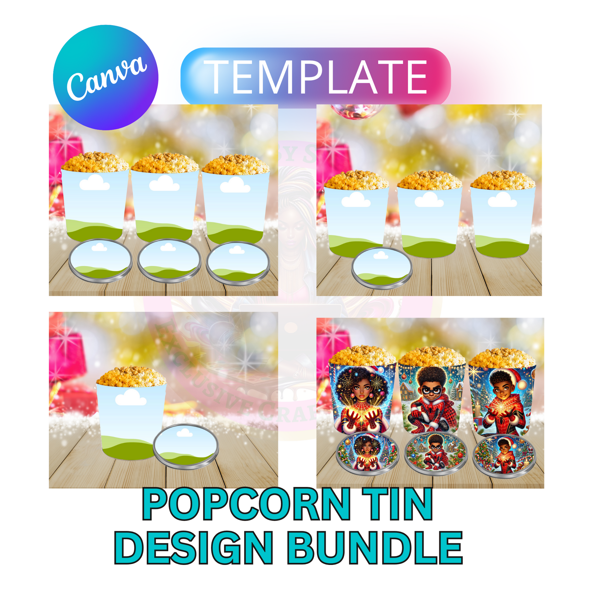 Grab these Canva Popcorn Tin Mockup Templates today to give your holiday designs the presentation they deserve. Click "Add to Cart" now and start customizing instantly!
