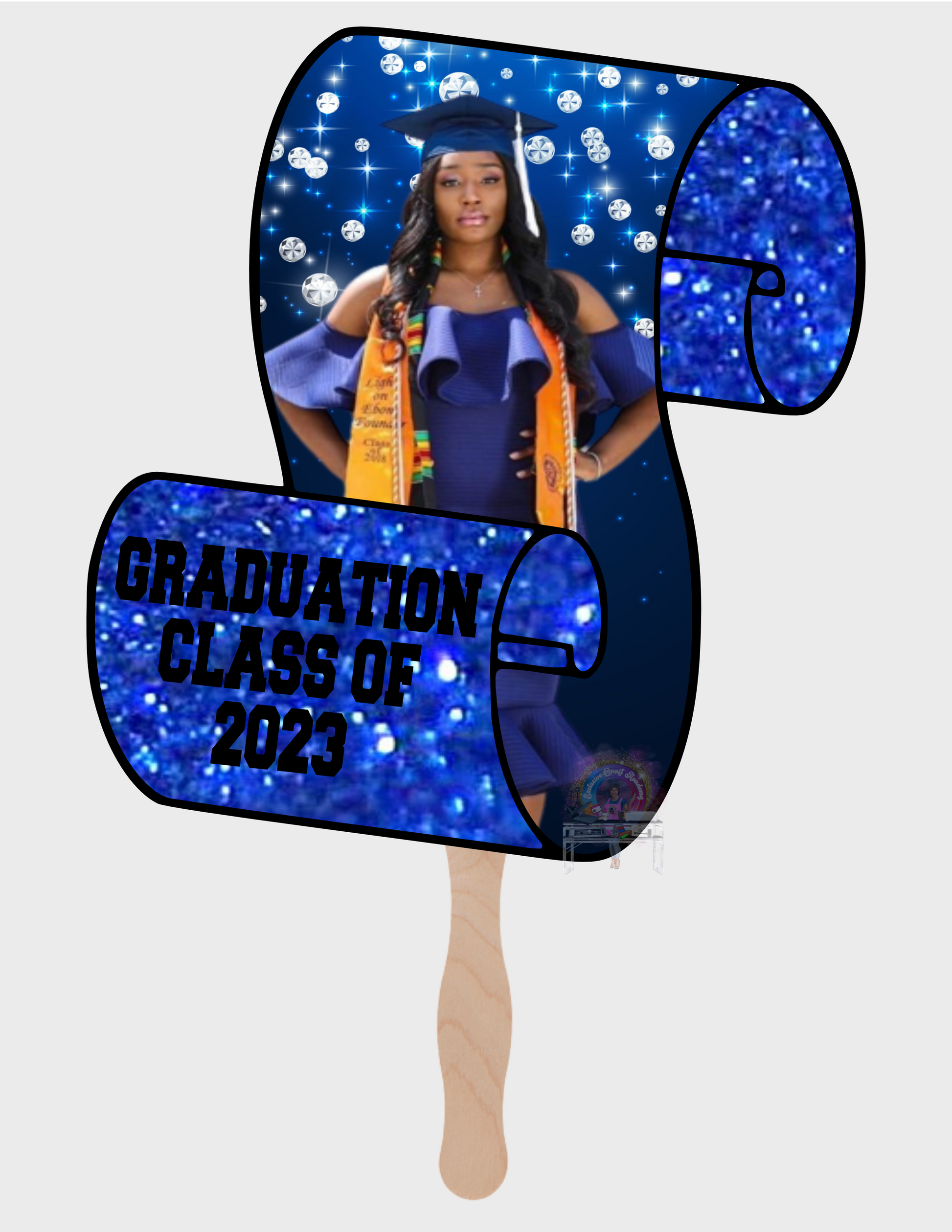 Show your graduation off in style with our 2023 Grad Cap Fan template, a modern way to easily customize a keepsake product, perfect for promoting senior graduation in vibrant and striking colors.